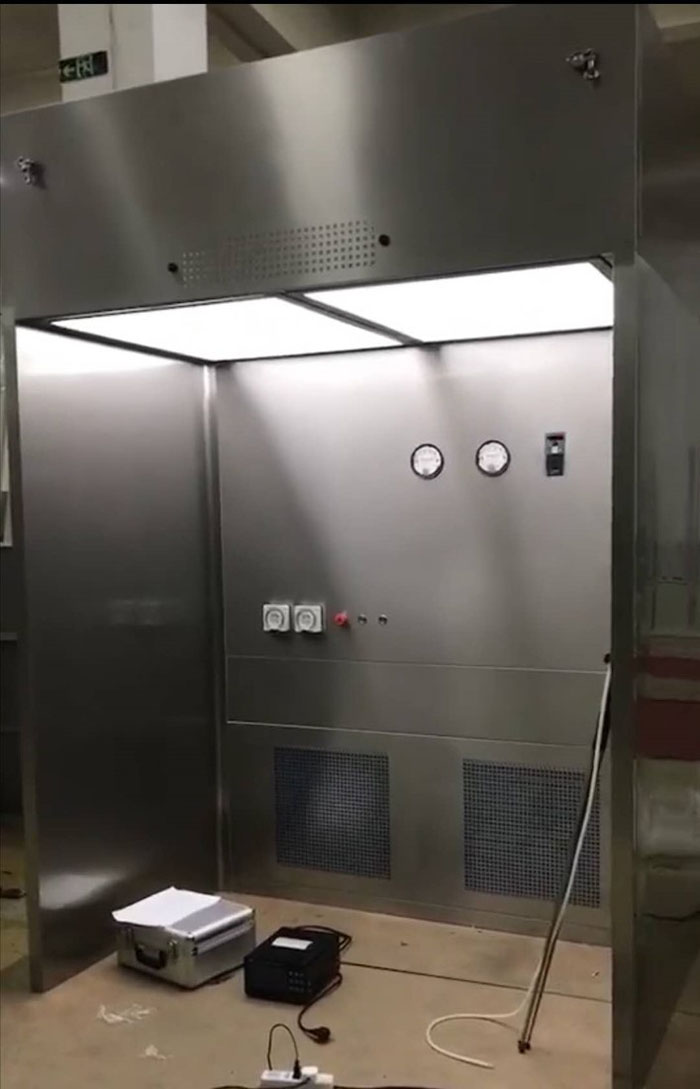高效過濾器后從氣流擴散送風單元出風面吹出,潔凈空氣以均勻的斷面風速流經工作區,從而形成高潔凈的工作環境。中心稱量罩的操作區域維持在負壓狀態,排出10%的循環空氣。中心稱量小室的空氣經過三級過濾系統(高效過濾器除去99.99%的顆粒≥0.3μm以上的所有灰塵)進行自循環,設計符合藥廠GMP要求。
